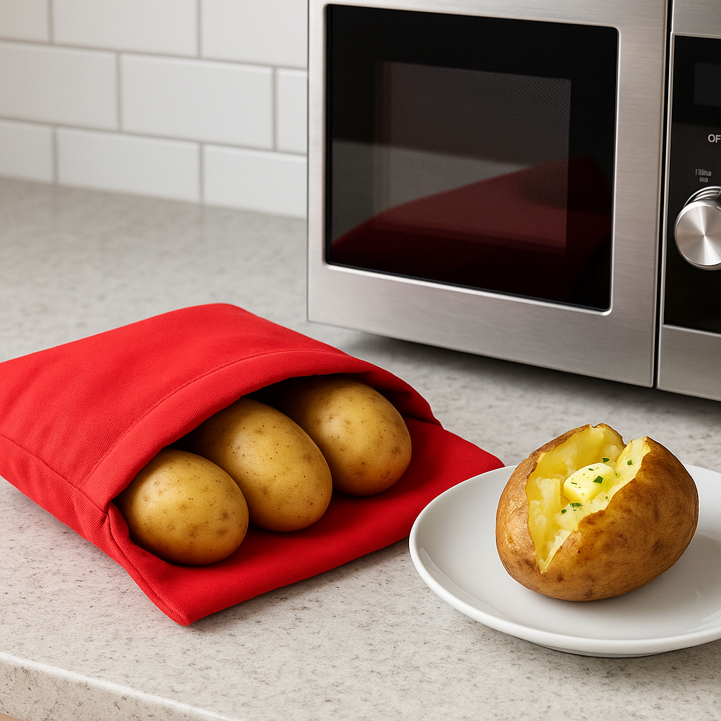 De Express Aardappeltas is jouw nieuwe keukengeheim. Dankzij de slimme isolerende stof wordt stoom gelijkmatig verdeeld, waardoor aardappels garen met behoud van smaak, textuur en voedingsstoffen. Ook ideaal voor het opfrissen van oud brood of het stomen van maïskolven.